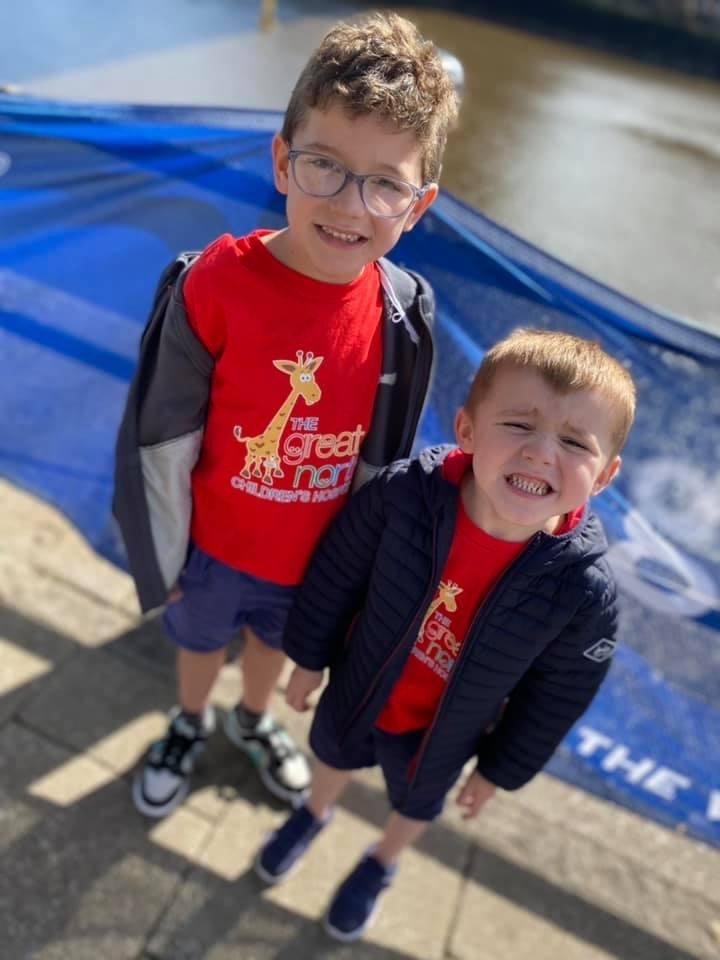 Above: Finlay and Luca model their Great North Children’s Hospital T-shirts
